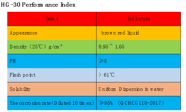 HG-30 is a corrosion inhibitor concentrate, which needs to be diluted by about 10 times with water.